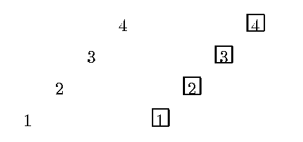 \multiframe(0,0)(20,20){4}(10,10)[b]{1}{2}{3}{4}